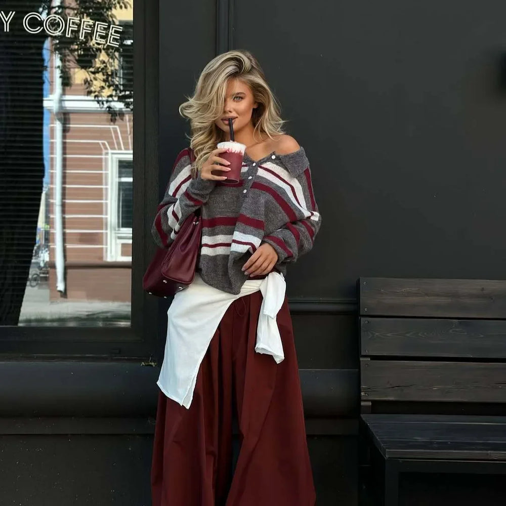 Helga | Damen Winter Gemütlicher Cardigan mit Perlenknöpfen